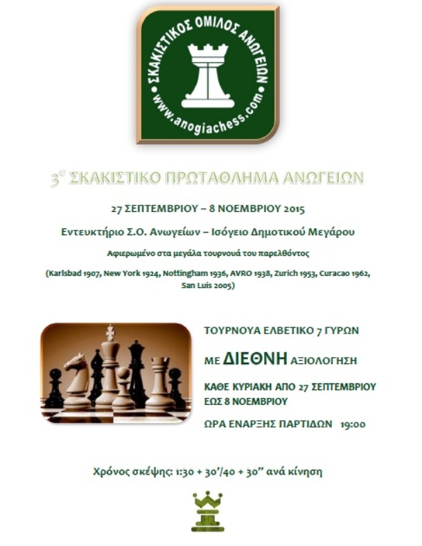 «3ο ΣΚΑΚΙΣΤΙΚΟ ΠΡΩΤΑΘΛΗΜΑ ΑΝΩΓΕΙΩΝ 2015»