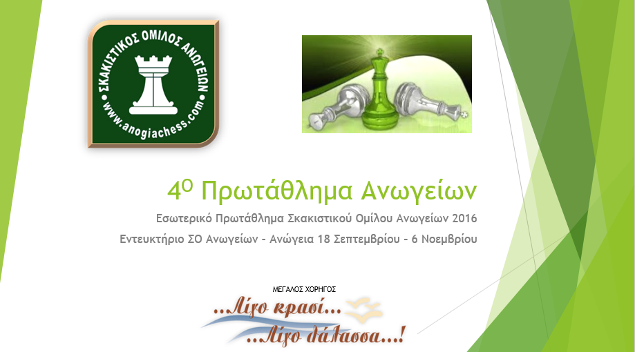 4ο ΕΣΩΤΕΡΙΚΟ ΠΡΩΤΑΘΛΗΜΑ Σ.Ο. ΑΝΩΓΕΙΩΝ: 18 Σεπτεμβρίου – 6 Νοεμβρίου 2016